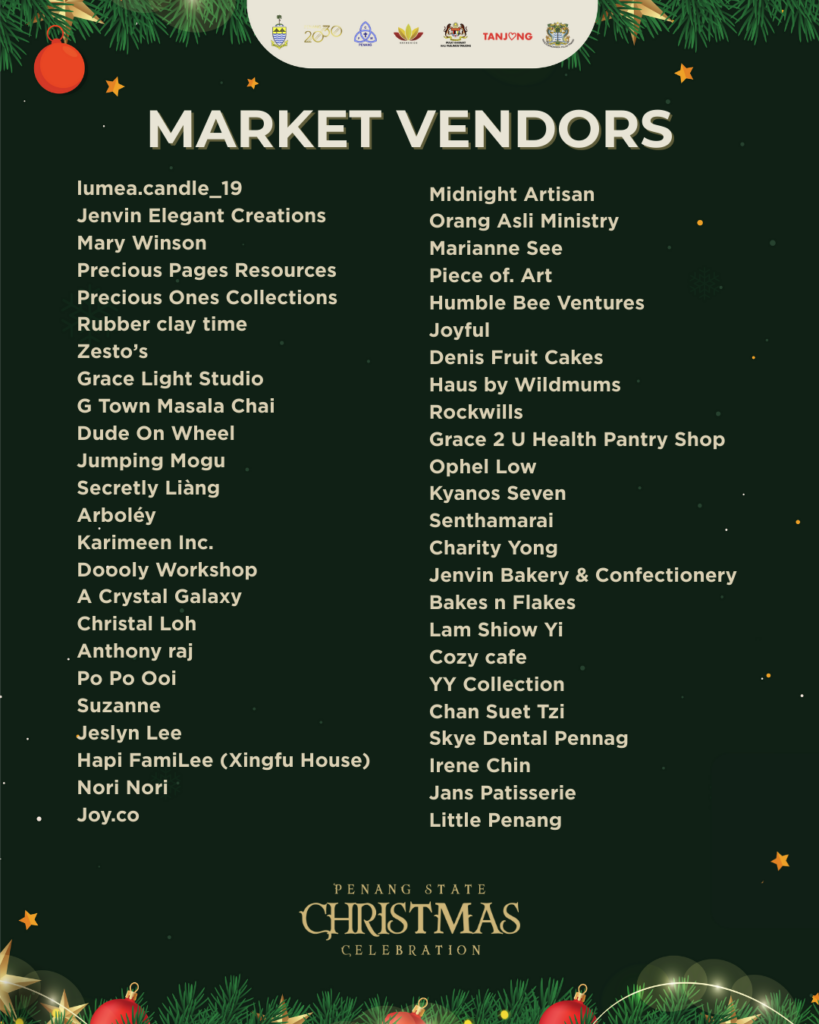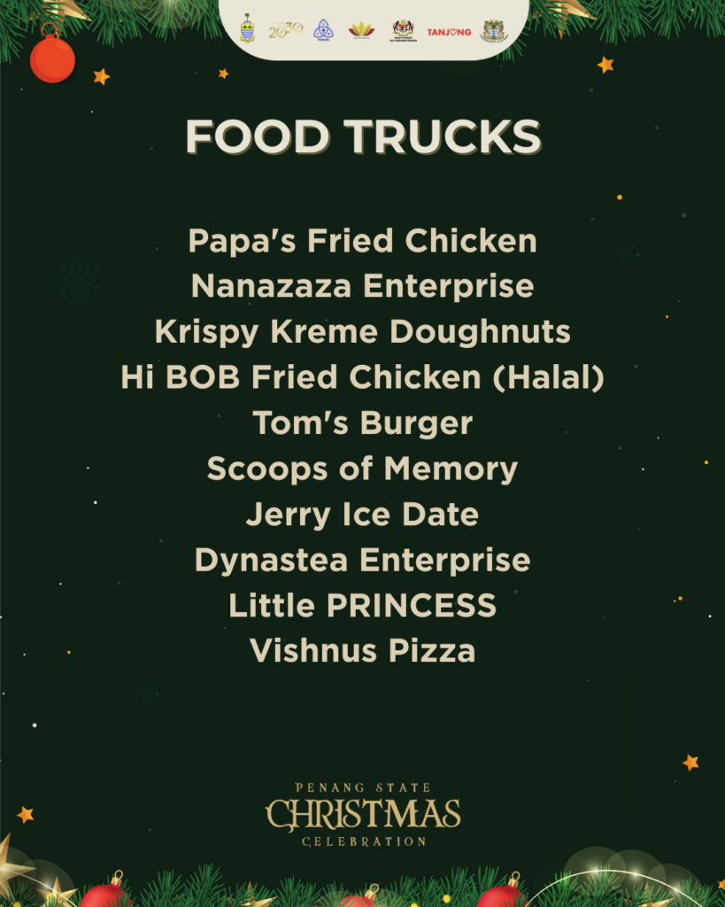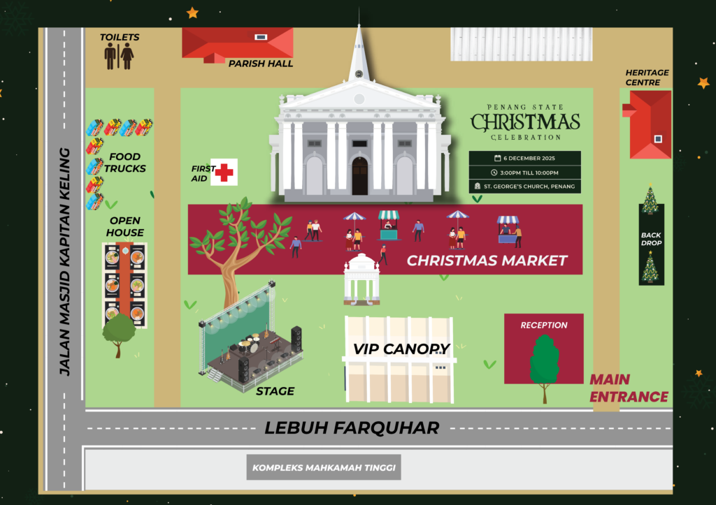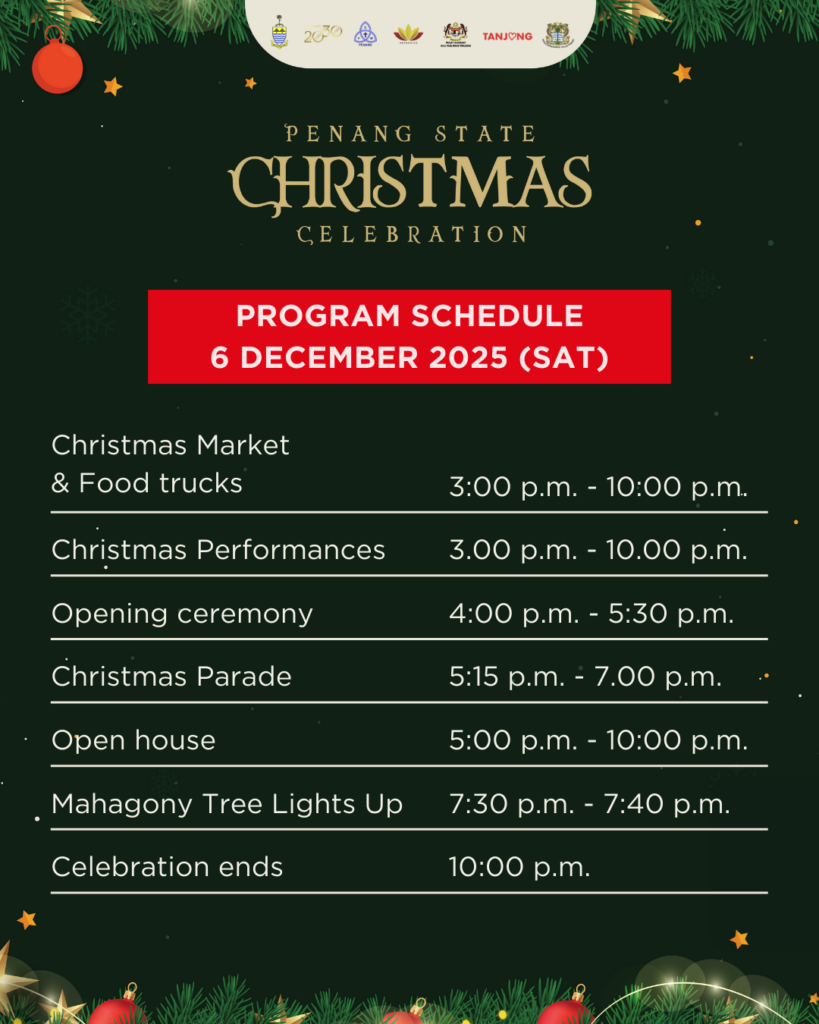 Penang State Christmas Celebration 2025 PROGRAMS CHRISTMASPARADE CHRISTMASMARKET OPEN HOUSE &FOOD TRUCKS CHRISTMAS PERFORMANCE EVENT LAYOUT RELIVE THE MOMENTS